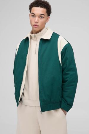 Oversize Kontrast Cord Twill Bomberjacke Mit Kragen - Forest - L, Forest