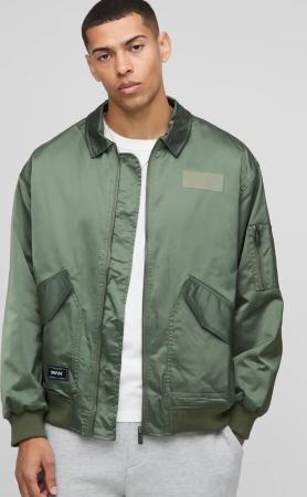 Boxy Fit Homme Applique Pu Collared Bomber Jacket - Forest - L, Forest