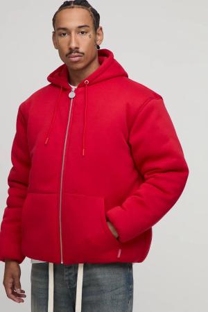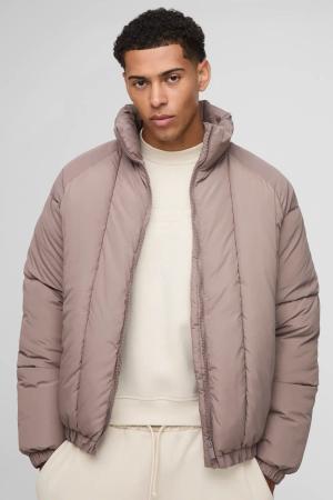 Oversized Fit Ruched Sleeve Panelled Puffer Jacket - Plum - L, Plum