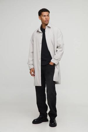 Oversized Fit Single Breasted Nylon Car Coat - Grey - L, Grey