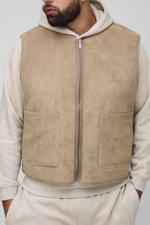 Plus Boxy Oversized Fit Reversible Borg & Suede Gilet - Ecru - 2Xl, Ecru