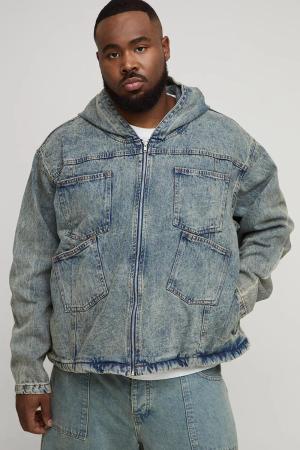 Plus Boxy Oversized Fit Tinted Denim Hoodie - Vintage Blue - 2Xl, Vintage Blue