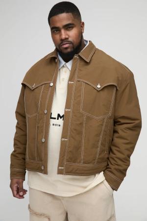 Plus Gepolsterte Western-Jacke Mit Kontrast-Naht - Tobacco - Xxxl, Tobacco