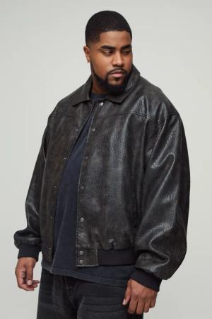 Plus Geprägte Pu Harrington-Jacke - Black - Xxl, Black