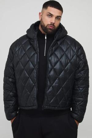 Plus Oversized Boxy High Shine Quilted Hooded Funnel Puffer Jacket - Black - 2Xl, Black