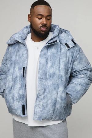 Plus Oversized Fit Washed Nylon Hooded Funnel Neck Duvet Puffer Jacket - Grey - 2Xl, Grey