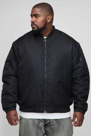 Plus Regular Fit Padded Nylon Panelled Bomber Jacket In Black - 2Xl, Black