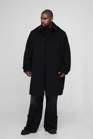 Plus Regular Fit Plain Collared Overcoat In Black - 3Xl, Black