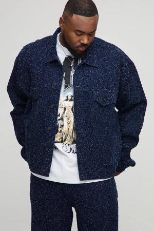 Plus Textured Denim Boxy Oversized Denim Jacket - Indigo - 2Xl, Indigo