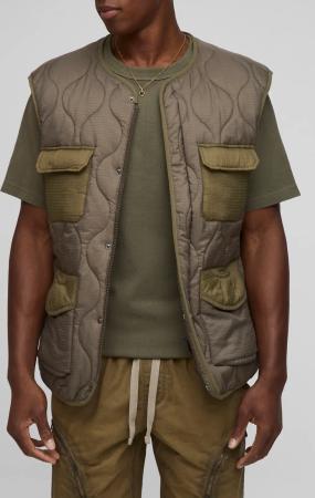Regular Fit Collarless Quilted Ripstop Colour Block Gilet - Olive - M, Olive