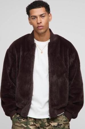 Regular Fit Faux Fur Bomber Jacket - Chocolate - L, Chocolate