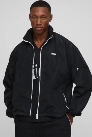 Regular Fit Two Tone Borg Nylon Mix Funnel Neck Zip Through Jacket - Grey - M, Grey