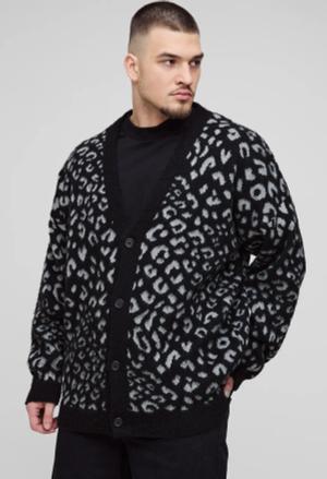 Tall Oversize Strick-Cardigan Mit Leopardenprint - Black - M, Black