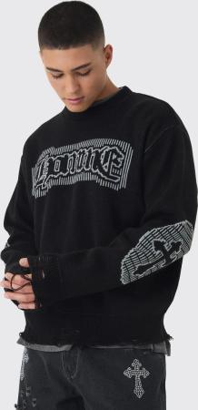 Zerrissener Oversize Rundhals Homme Pullover - Black - M, Black