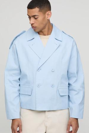 Zweireihige Kastige Oversize Twill-Regenjacke - Light Blue - L, Light Blue