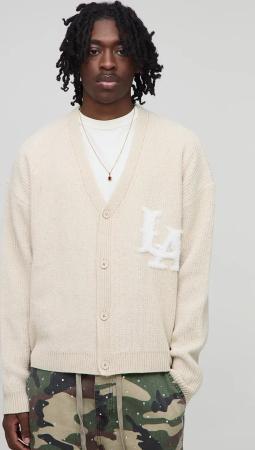 Boxy Varsity Rib Knitted Cardigan - Grau - S, Grau