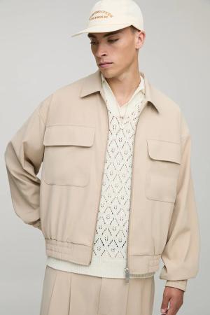 Kastige Oversize Harrington-Jacke mit Cargo-Taschen - Beige - S, Beige
