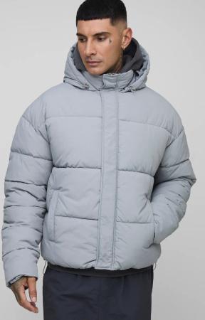 Graue Man Steppjacke mit Kapuze - M, Grau
