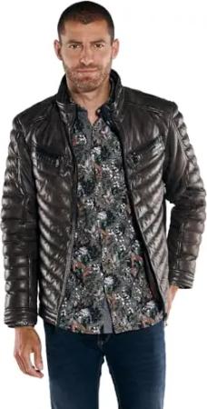 Herren Herren Lederjacke Regular, Dunkelbraun, 37423, Dunkelbraun in Größe 62