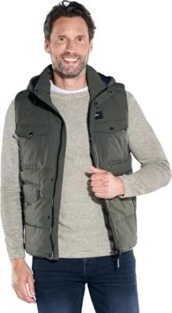 Herren Herren Steppweste mit abnehmbarer Kapuze, Khaki, 37413, Khaki in Größe 52