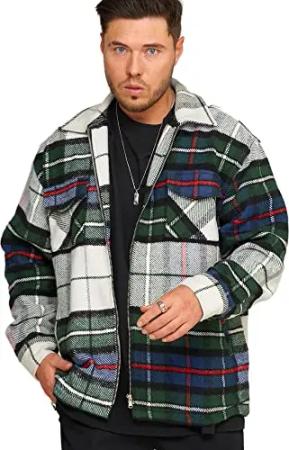 . Herren Oversized Übergangsjacke Hemd-Jacke Flanell Overshirt Jacket 2Y_4440-Green-White-S
