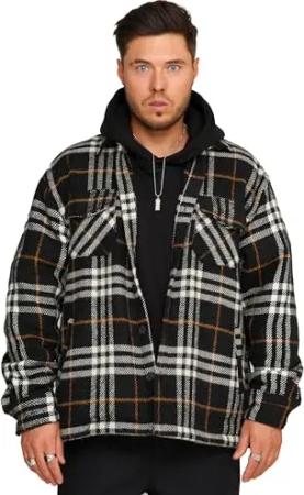 . Herren Oversized Übergangsjacke Hemd-Jacke Flanell Overshirt Jacket 2Y_1110-Black-White-S