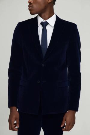 Slim Fit Ribbed Velour Blazer - Navy - 38, Navy