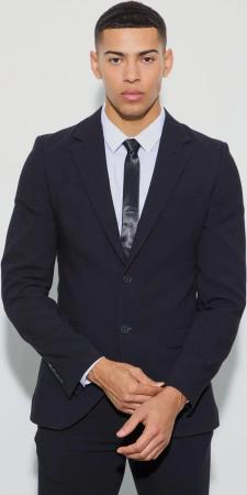 Einreihige Skinny Anzugjacke aus Jersey - Schwarz - 38, Schwarz