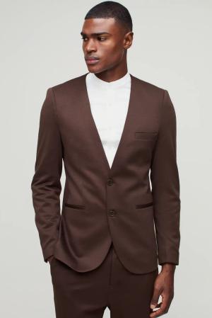 Kragenloser Slim-Fit Jersey-Blazer - Braun - 36, Braun