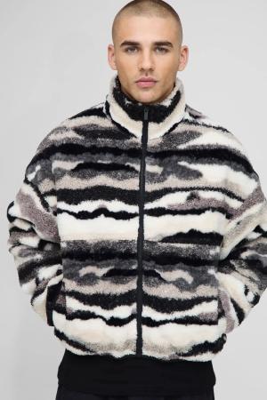 Regular Fit Textured Marble Borg Jacket - Multi - L, Multi