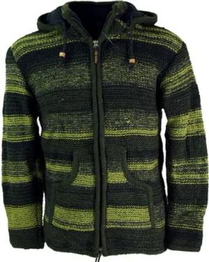 GURU SHOP Unisex Strickjacke Wolljacke Nepaljacke Batik Olive - Modell 25, Herren, Size:S