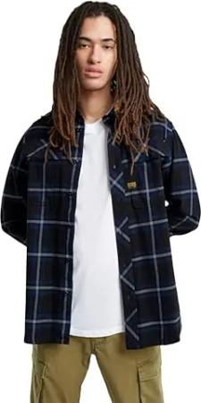 RAW Herren Check overshirt, Mehrfarben (raven blur check D23662-C904-C754), XL