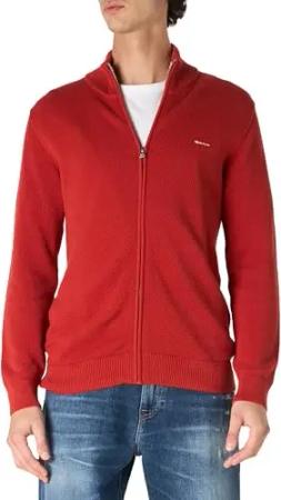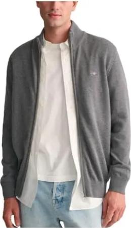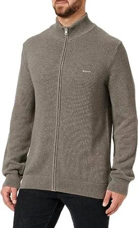 Herren Cotton Pique Zip Cardigan Strickjacke, Dark Grey Melange, M EU