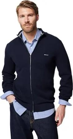 Herren Cotton Pique Zip Cardigan Strickjacke, Evening Blue, 4XL EU