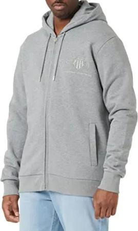 Herren Reg Shield Full Zip Hoodie Kapuzenpullover, Grey Melange, M EU