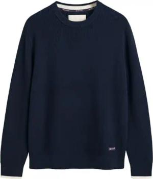 Herren Ribbed Cotton C-Neck Pullover, Evening Blue, X-Large