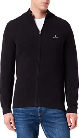 Herren Cotton Pique Zip Cardigan Strickjacke, Schwarz, XL EU