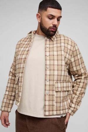 Plus Karierte Shacket Mit Borg-Futter - Stone - Xxxl, Stone