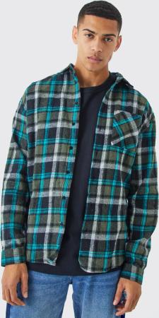 Regular Fit Heavyweight Brushed Check Overshirt - Olive - L, Olive
