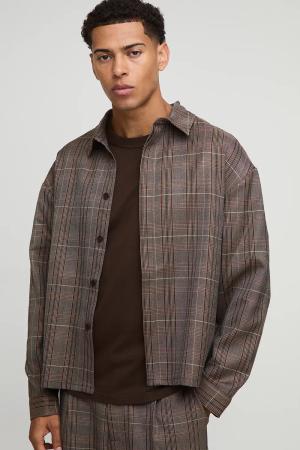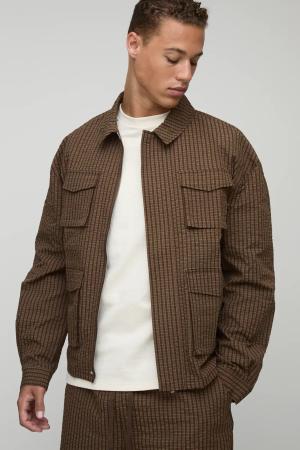 Tall karierte Oversize Cargo-Shacket - Braun - S, Braun
