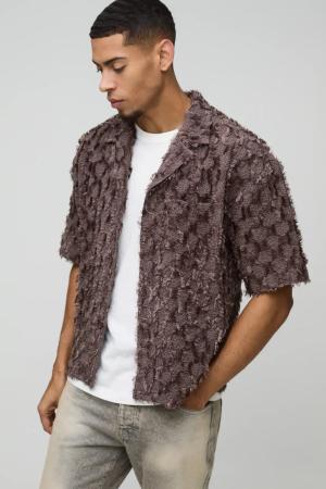 Kastiges Oversize Hemd in Knitteroptik - Braun - L, Braun