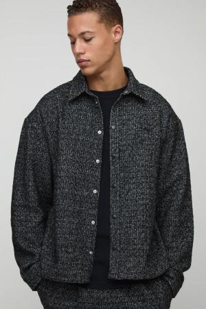 Tall Oversize Overshirt mit Fischgräten-Print - Schwarz - 2XL, Schwarz