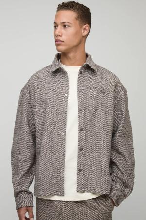 Tall Oversize Overshirt mit Fischgräten-Print - Taupe - 2XL, Taupe