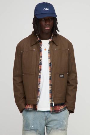 Twill-Jacke mit Kontrast-Kragen - Braun - S, Braun