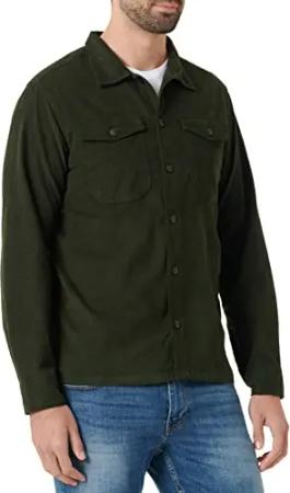 Herren Hemd Overshirt Freizeithemd Teddyfellkragen Hemden Langarm Regular Männer Jeans Hemd Kentkragen Übergangshemd H-371 Dunkelgrün 3XL