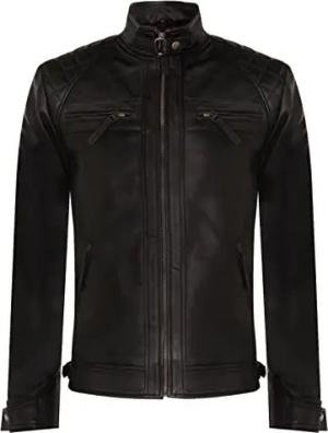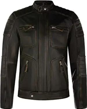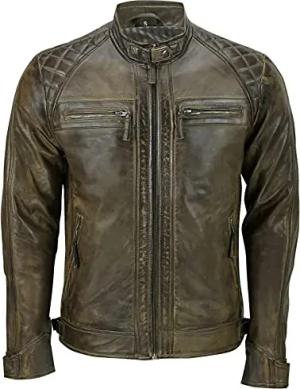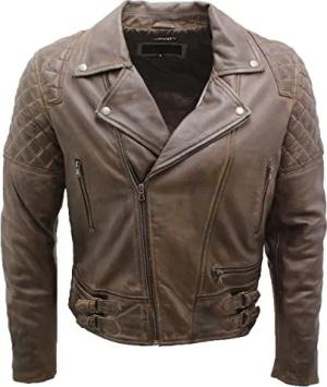 Herren Brando Gesteppte Leder Biker Jacke Motorrad Stil