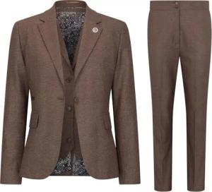 Brauner dreiteiliger Tailored Fit-Anzug für Damen mit Prince-of-Wales-Karo