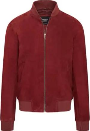 Burgunderrote MA-1 Varsity-Bomberjacke aus weichem Ziegenwildleder für Herren