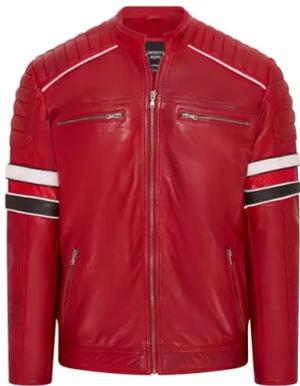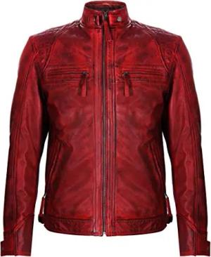 Herren Rot Retro Gesteppte Echt Nappa Bikerjacke Aus Leder L