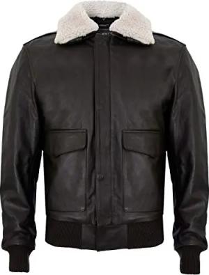 Herrenjacke 100% Echtleder Schwarz Air Force Aviator Design Schaffell Kragens S